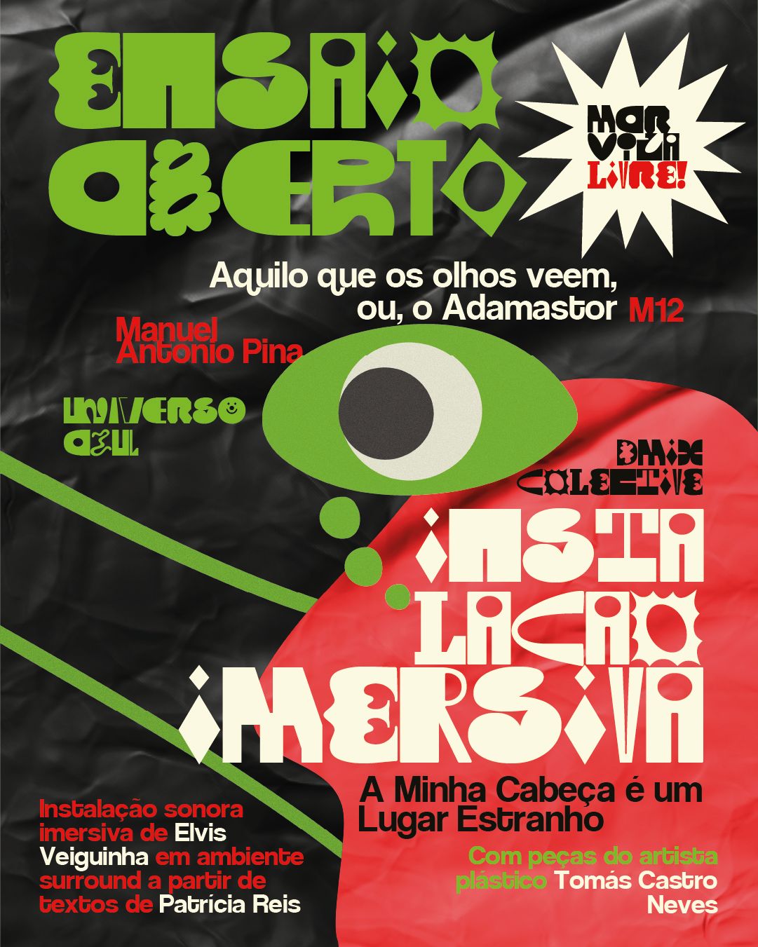 Um dos destaques da programação acontece na DMIX Collective, com a multi-instalação sonora “A Minha Cabeça é Um Lugar Estranho”, criada por Elvis Veiguinha a partir de textos de Patrícia Reis e desenhos do artista plástico Tomás Castro Neves, que também terá peças expostas. A instalação, distribuída por três estúdios, propõe uma experiência imersiva em ambiente surround, cruzando som, literatura e artes visuais. O espaço estará aberto entre as 17h00 e as 19h30, com entrada livre.