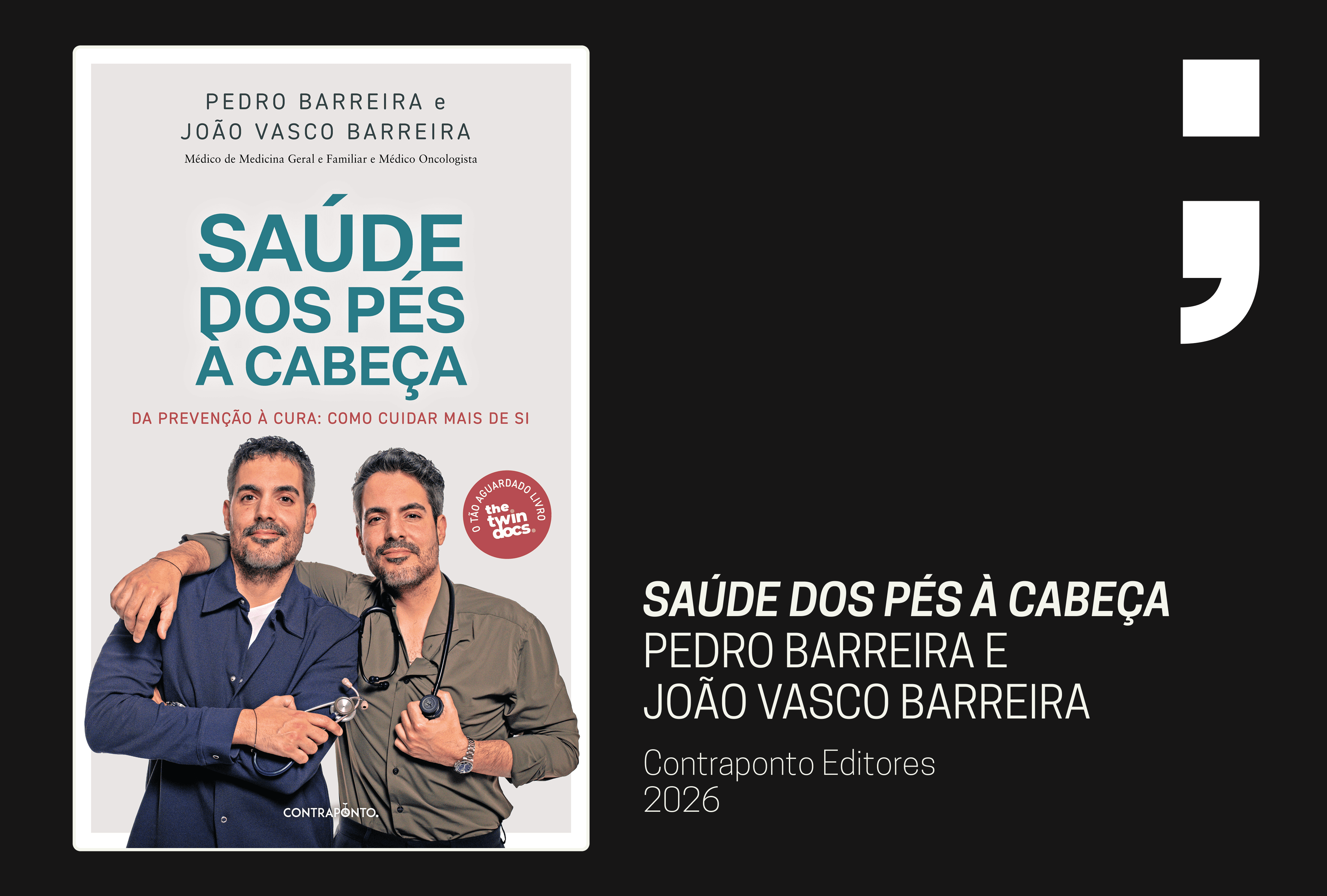 Os irmãos gémeos Pedro Barreira e João Vasco Barreira, médicos de Medicina Geral e Familiar e Oncologia, respetivamente, acabam de lançar o livro Saúde dos Pés à Cabeça, com o selo da Contraponto. A dupla respondeu às perguntas do MOTIVO sobre o que continuamos a ignorar, onde falhamos enquanto sociedade e qual a mudança mais urgente no que à saúde diz respeito.