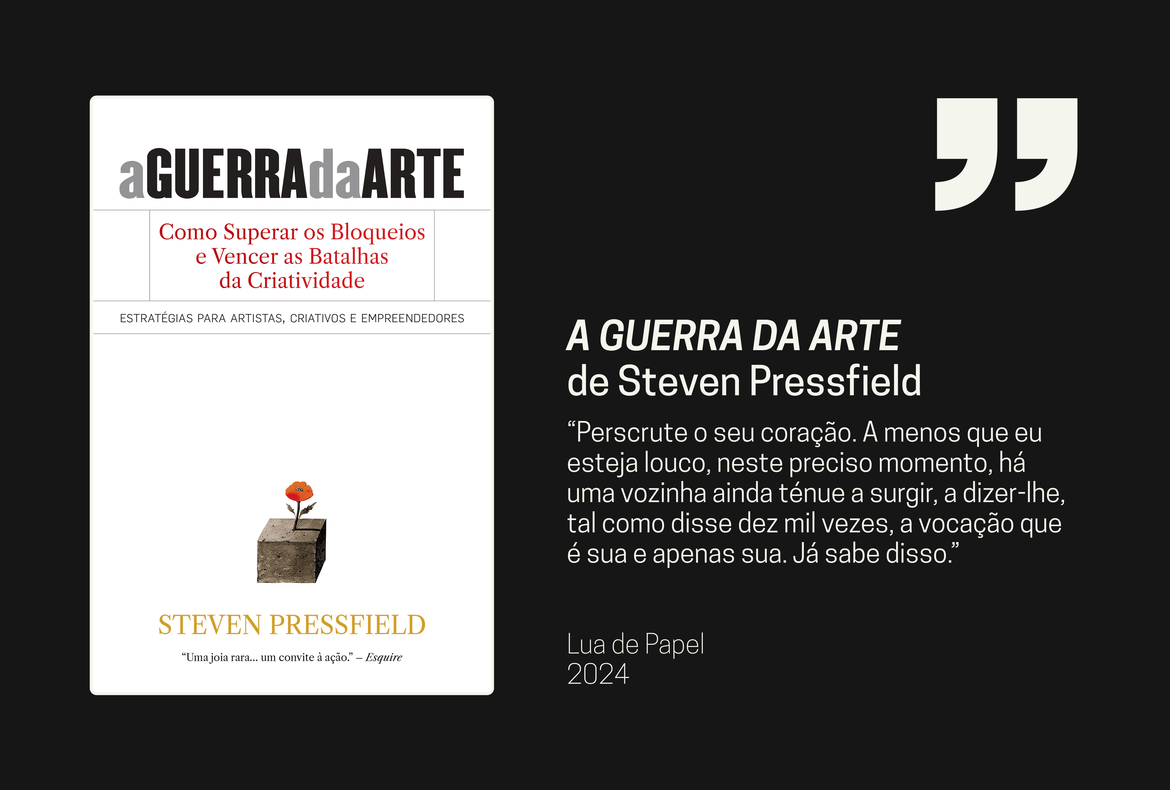 Alerta #procrastinação. Este é o livro para quem adia. Para quem sente a vontade mas não avança. A Guerra da Arte é um manifesto contra a resistência interna, esse inimigo invisível que se disfarça de dúvida ou perfecionismo. Steven Pressfield escreve de forma direta, incisiva e, por vezes, implacável. Divide o livro em três partes: a resistência, o combate e o profissionalismo criativo. Gostamos deste título porque é como um murro na mesa: motiva, sacode, obriga à ação. E, acima de tudo, mostra que o compromisso com a criatividade é uma escolha diária.