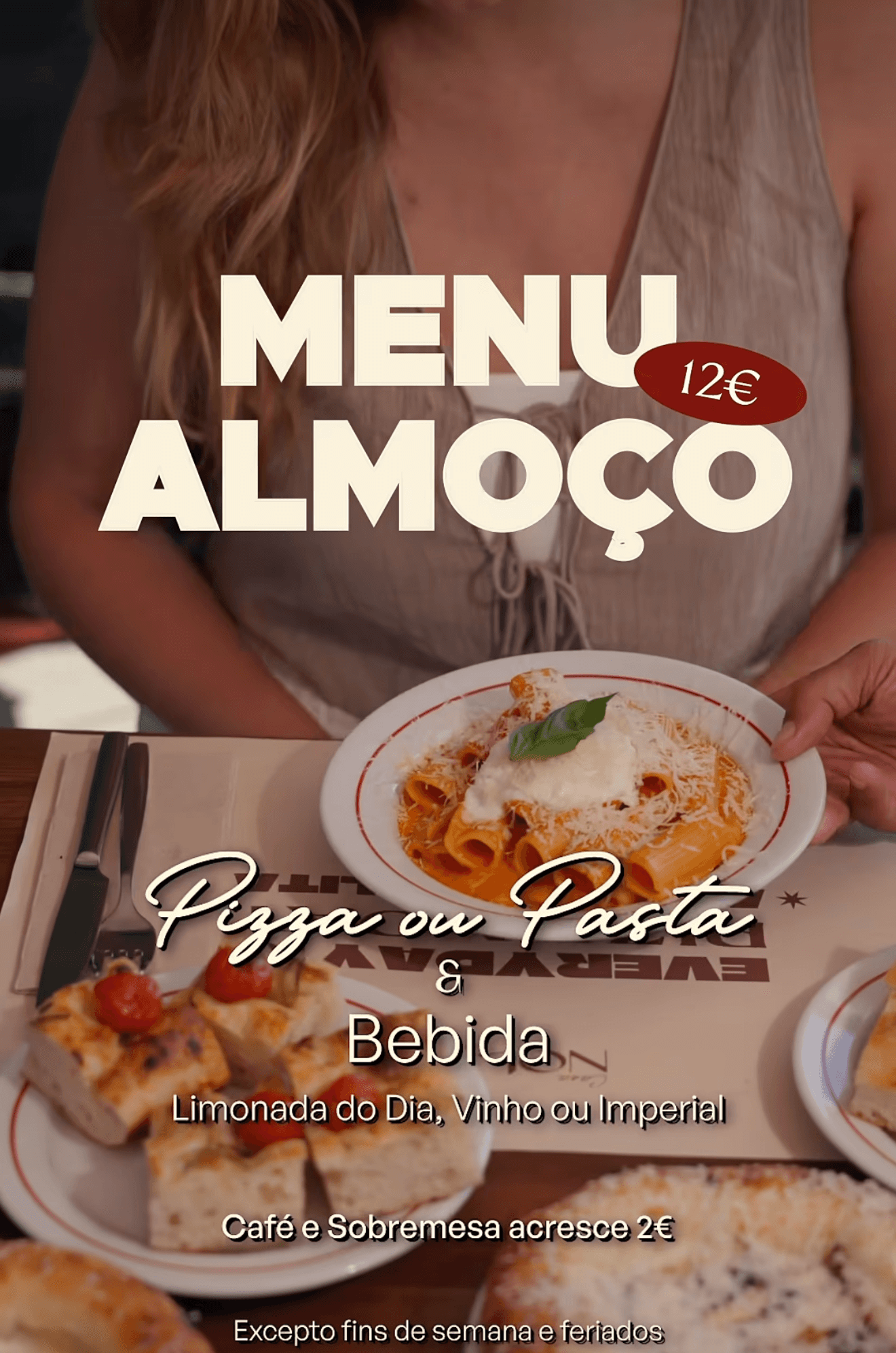 Neste restaurante italiano junto às Docas, o conceito é mais directo e informal. Por apenas 12€, é possível escolher um pizza ou um massa com direito a uma bebida, numa oferta pensada para quem procura rapidez sem abdicar de conforto. A vista é sobre os barcos atracados, o rio e a ponte, uma combinação que conquista quem experimenta.