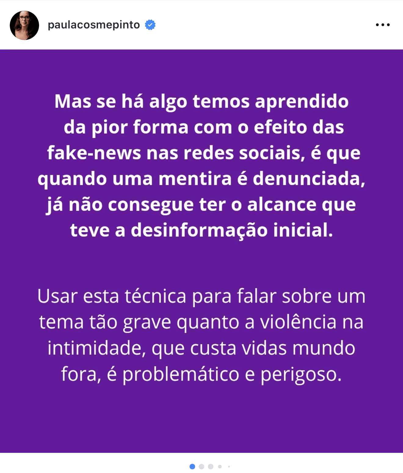 No Instagram, Paula Cosme Pinto, cronista, podcaster e ativista pela igualdade, introduziu um dos argumentos mais relevantes neste debate, ao relacionar a campanha com aquilo que aprendemos com a desinformação digital. “Se há algo que temos aprendido da pior forma com o efeito das fake news nas redes sociais, é que quando uma mentira é denunciada, já não consegue ter o alcance que teve a desinformação inicial”.